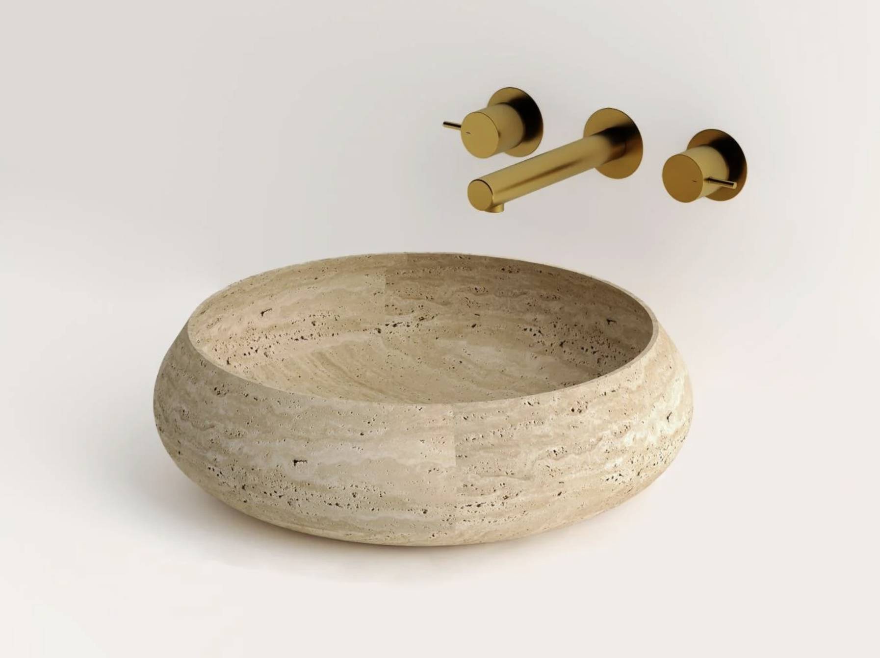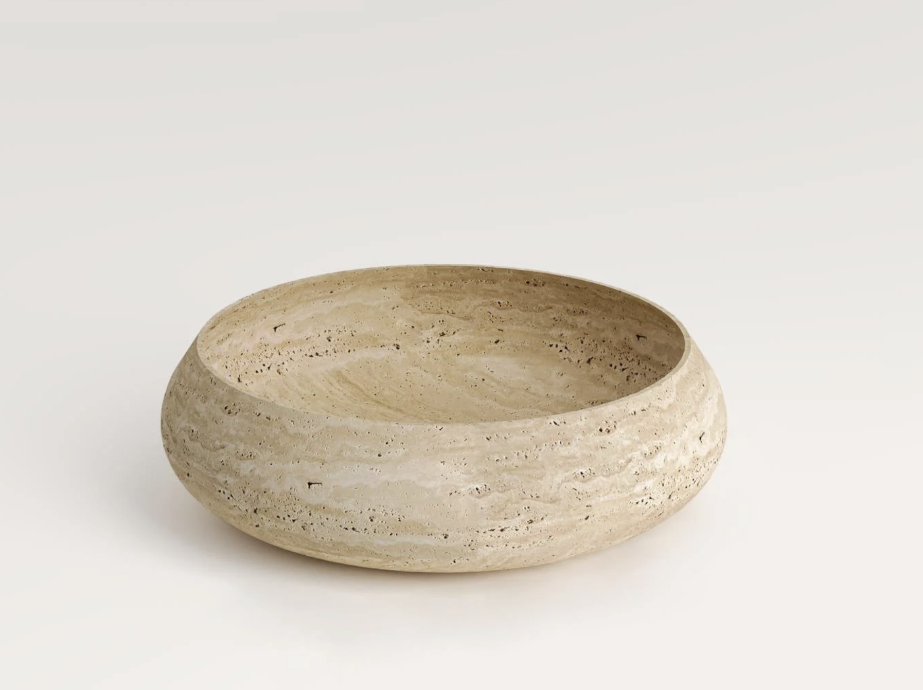 La vasque Alba apporte une touche spa à la salle de bain. Entièrement réalisée en travertin naturel, elle adopte une forme de coupe généreuse, au profil légèrement bombé à l’extérieur et adouci à l’intérieur. Sa teinte pierre chaleureuse et ses marbrures naturelles créent un rendu très organique, parfait pour une ambiance zen et sophistiquée.