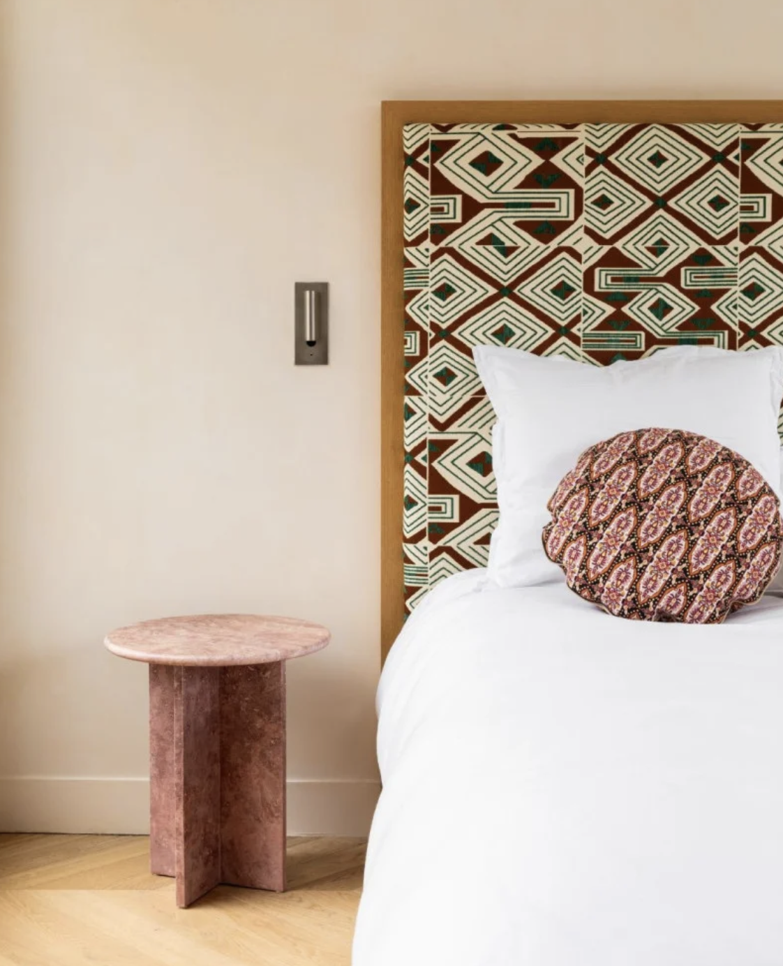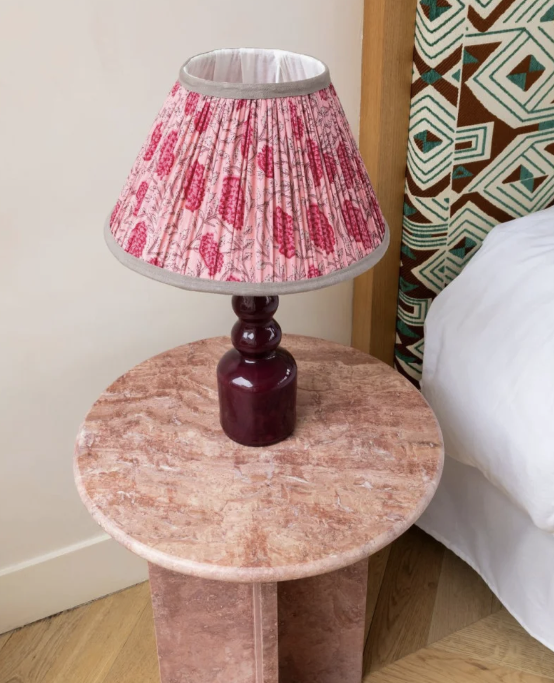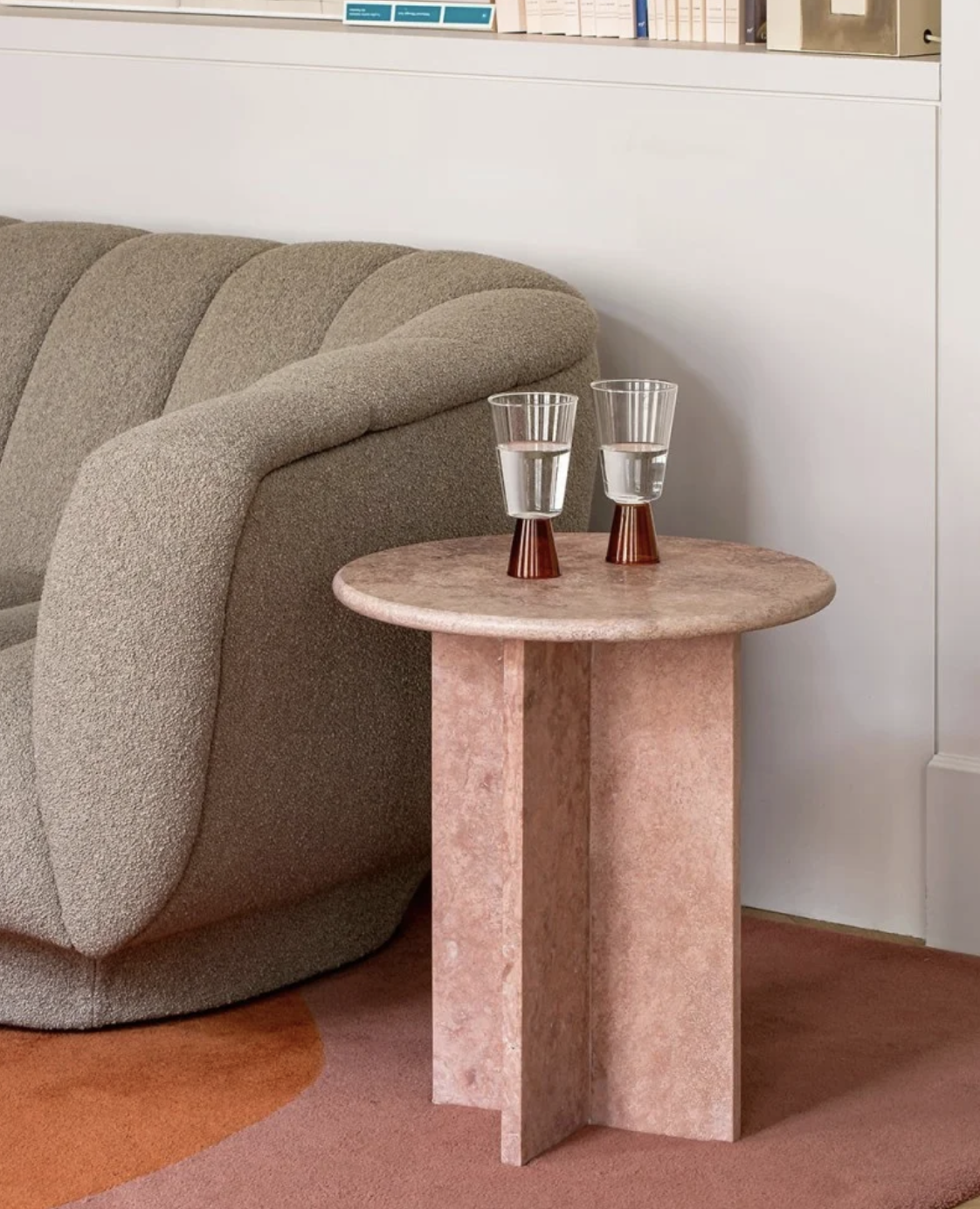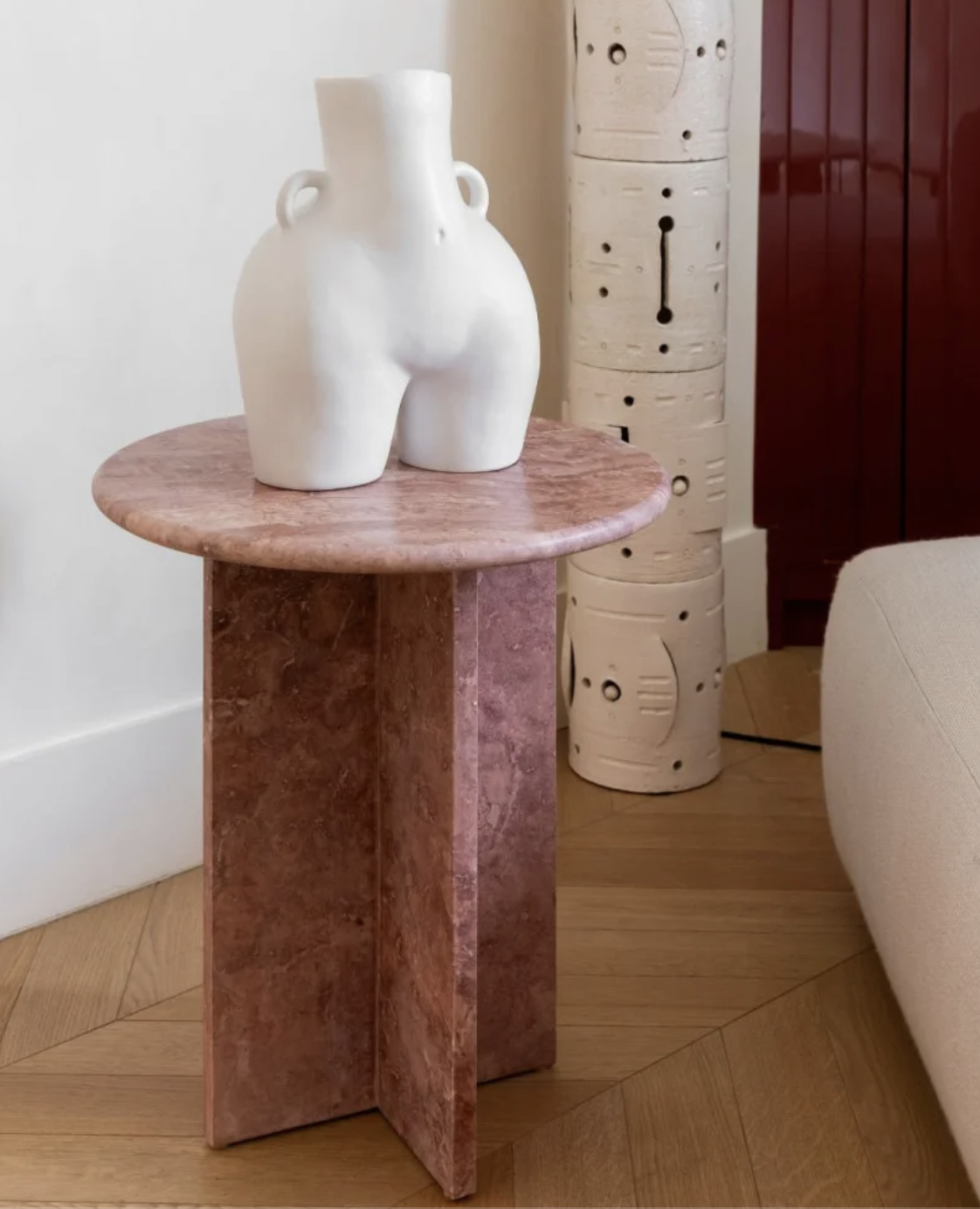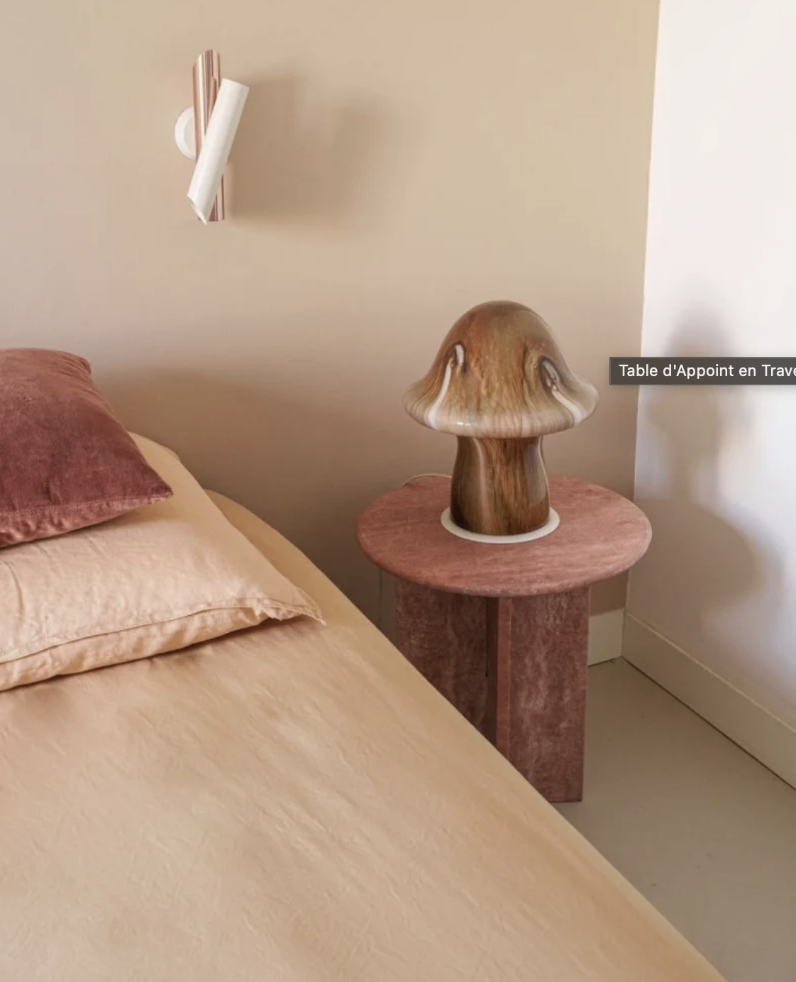 La table d’appoint ASHBYA incarne un luxe discret, idéal en bout de canapé ou en chevet. Son plateau rond en travertin repose sur un piètement plein aux facettes légèrement biseautées, qui lui donnent une allure de colonne contemporaine. La pierre, aux tons pierre chaude et aux marbrures naturelles, apporte une vraie profondeur à la pièce sans jamais alourdir l’espace.