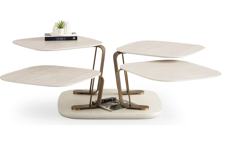 La table basse Bentley séduit par l’alliance parfaite entre design contemporain et matières nobles. Elle joue sur des volumes déstructurés à plusieurs niveaux, apportant une dynamique sculpturale à votre salon. Son plateau généreux et ses finitions minérales en font une pièce forte, aussi fonctionnelle qu’élégante.