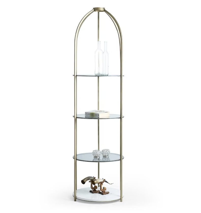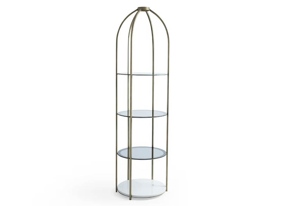 Sculpturale et aérienne, l’étagère Dôme sublime vos objets de décoration grâce à ses étagères en verre trempé et sa base en marbre véritable. Sa structure en laiton doré forme une arche élégante, apportant à la fois raffinement et légèreté à votre intérieur. Parfaite pour habiller un coin de pièce ou structurer un espace, cette étagère devient un élément décoratif à part entière, entre fonctionnalité et esthétique haut de gamme.
