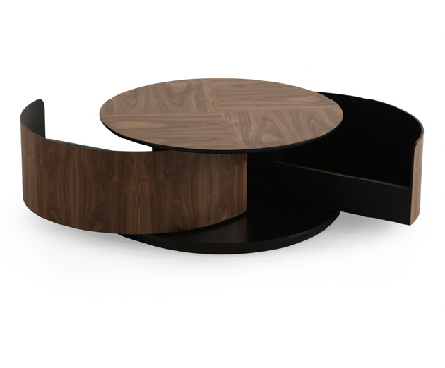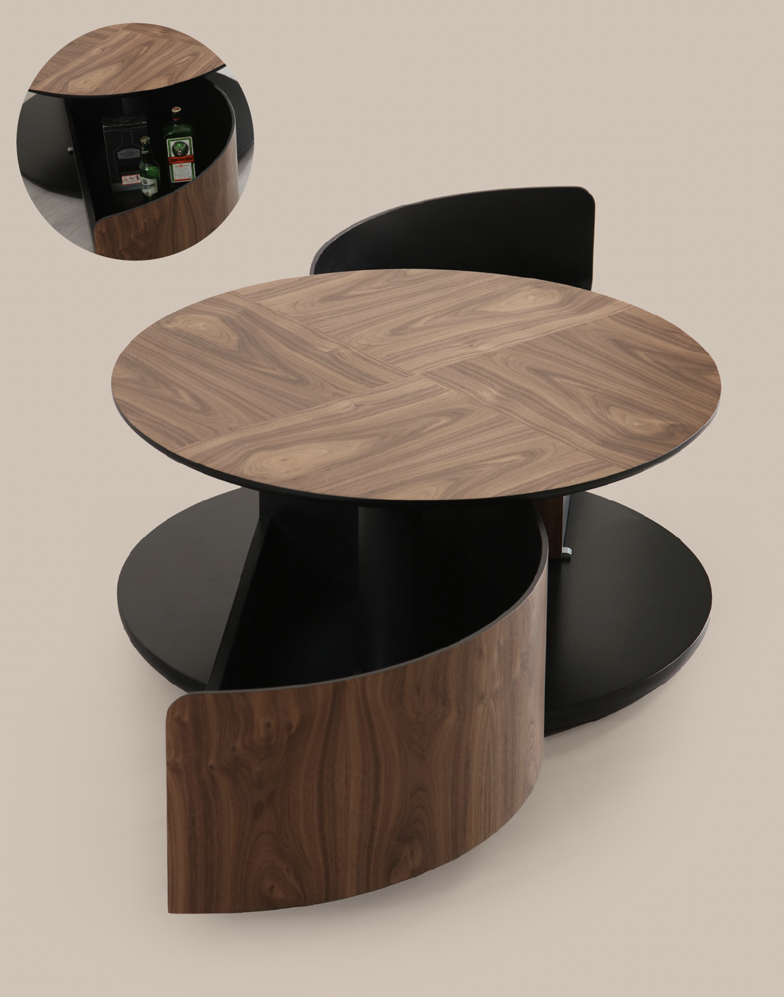 La table basse Eclipse séduit par son esthétique en demi-lune et ses contrastes de matériaux. Avec sa base enveloppante noire et son plateau circulaire en bois texturé, elle propose un design résolument moderne, presque architectural. L’ouverture centrale crée un effet sculptural et ajoute de la légèreté à l’ensemble. Parfaite pour un salon contemporain, cette pièce allie raffinement, fonctionnalité et originalité.