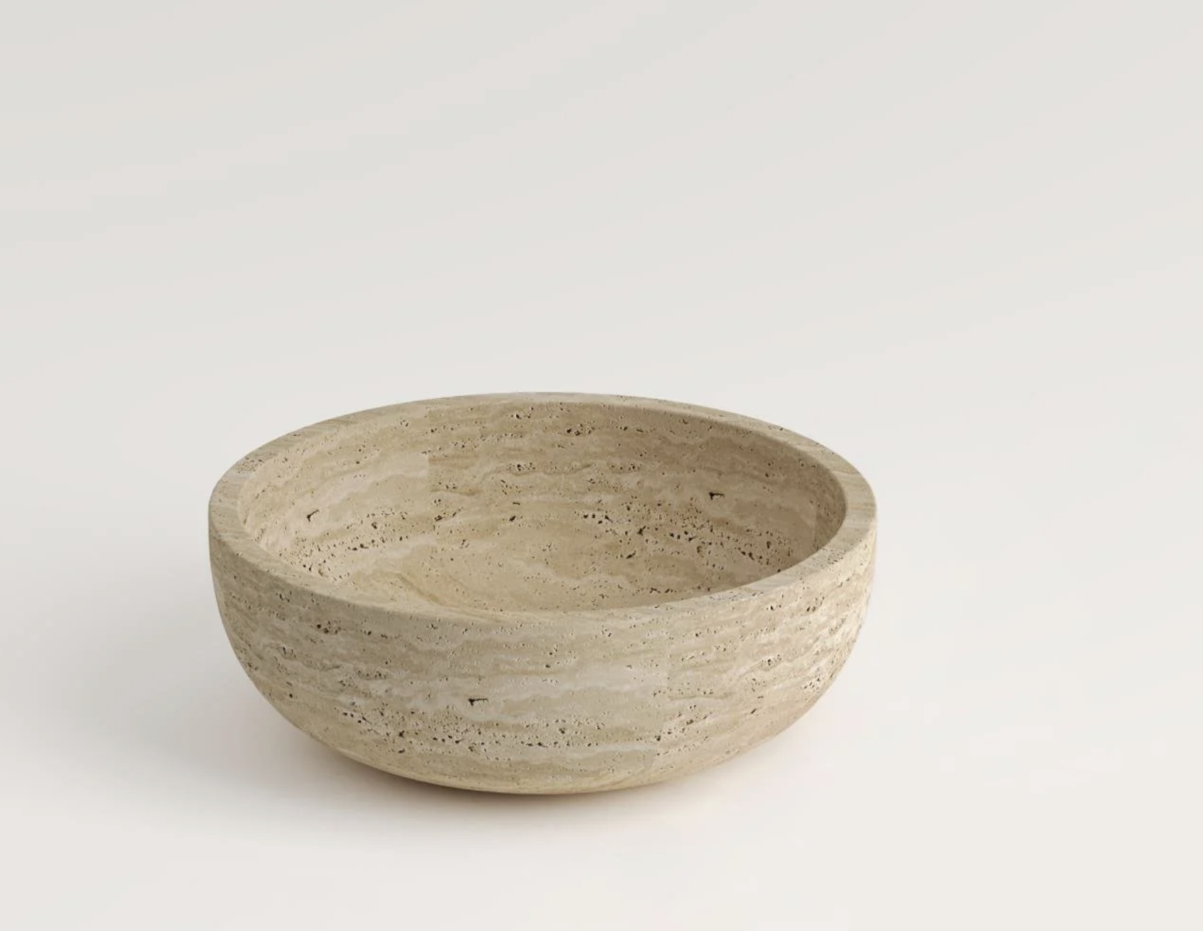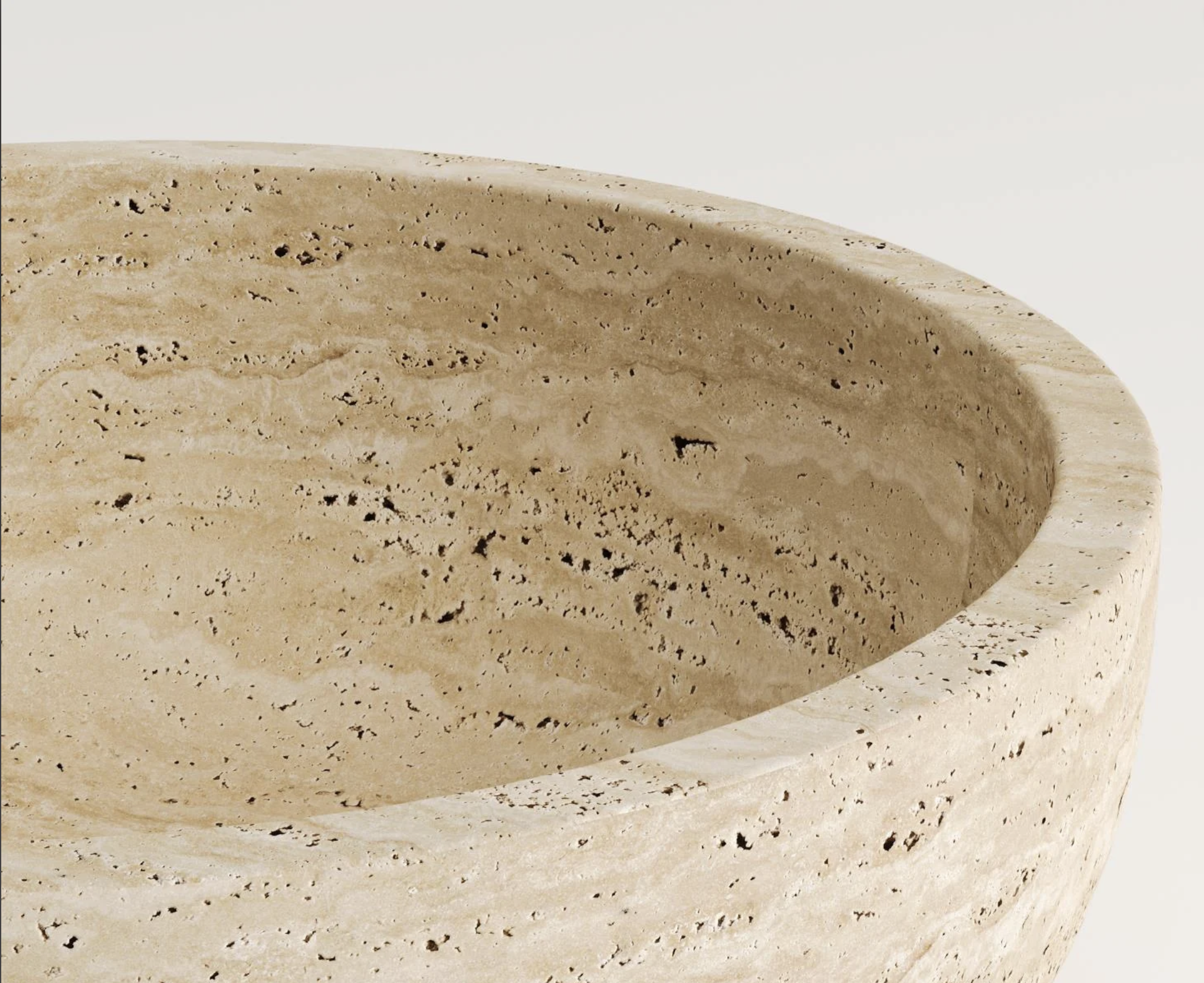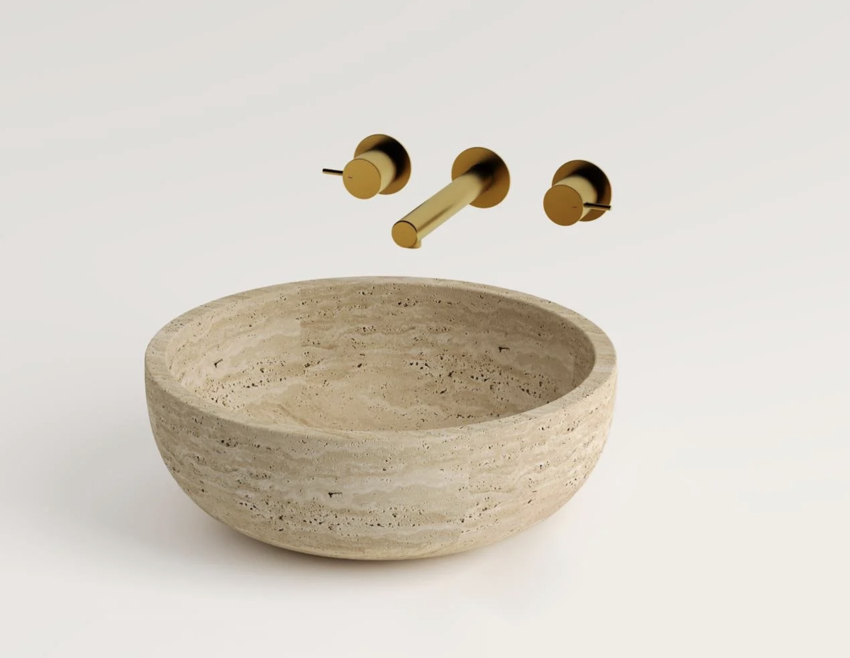 La vasque Lydia séduit par sa silhouette simple et parfaitement équilibrée. Taillée dans du travertin naturel, elle adopte une forme de coupe généreuse, légèrement évasée, qui rappelle les bassins des spas contemporains. Ses tons pierre chaleureux et le dessin naturel de la roche apportent une atmosphère douce et élégante à la salle de bain.