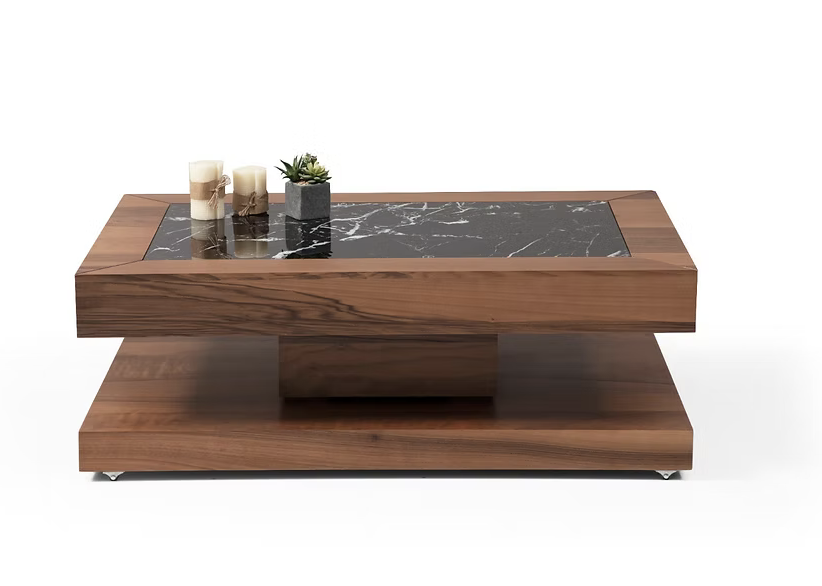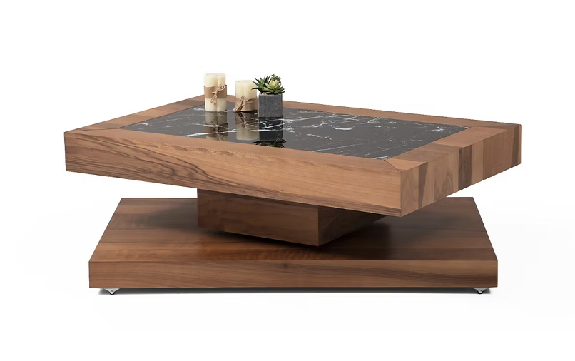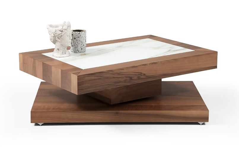 La table Milano incarne un design sophistiqué et contemporain, associant harmonieusement le bois naturel à un plateau en marbre. Elle se distingue par son piètement géométrique asymétrique qui donne à l’ensemble une allure sculpturale et dynamique. La base large et robuste assure la stabilité tout en apportant un aspect massif et rassurant.