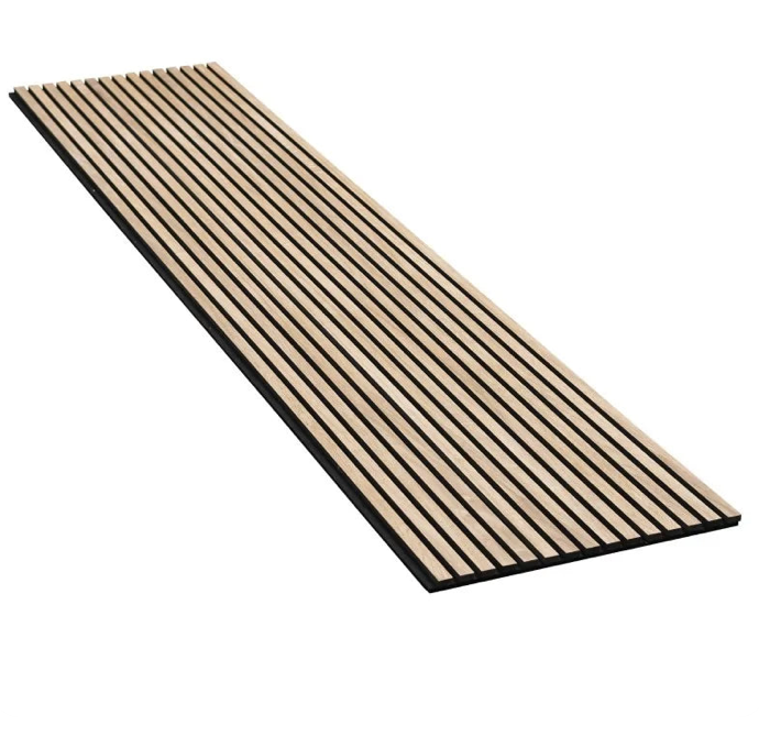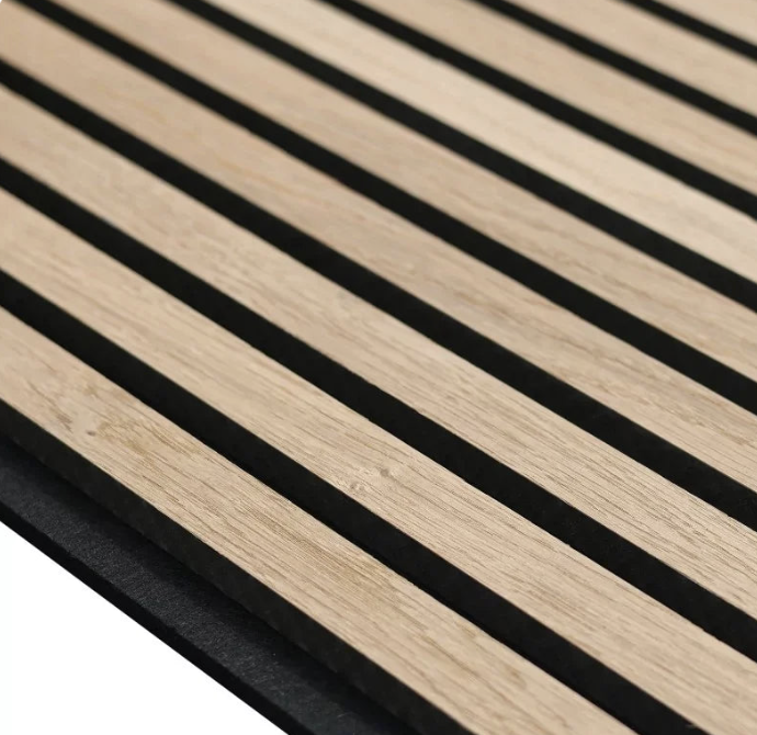 Offrez à vos murs un rendu haut de gamme et une ambiance plus sereine avec ce panneau acoustique chêne poudré. Son design à lames verticales allonge visuellement la hauteur de la pièce et apporte une touche contemporaine, élégante et chaleureuse. Grâce à sa feutrine acoustique noire, il aide à réduire la réverbération et à améliorer le confort sonore au quotidien, idéal dans un salon, une chambre, un bureau, une entrée ou un espace professionnel (accueil, salle de réunion, restaurant).