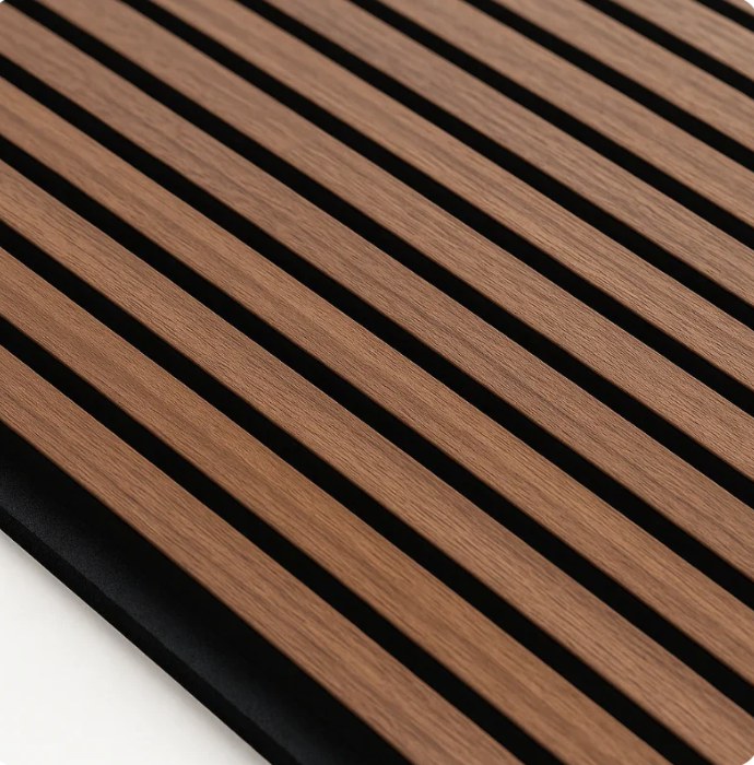 panneau acoustique enPanneau acoustique à lames – Teak Black sur feutrine noire
