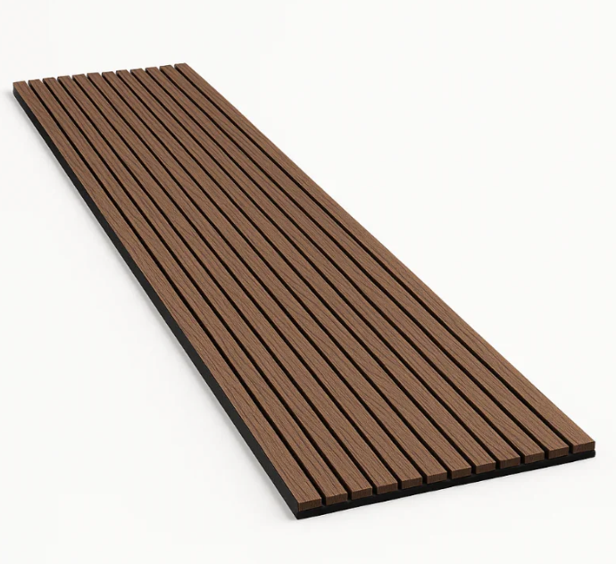 Offrez à vos murs un rendu haut de gamme et une ambiance plus sereine avec ce panneau acoustique Teak Black. Son design à lames verticales allonge visuellement la hauteur de la pièce et apporte une touche contemporaine, élégante et chaleureuse. Grâce à sa feutrine acoustique noire, il aide à réduire la réverbération et à améliorer le confort sonore au quotidien, idéal dans un salon, une chambre, un bureau, une entrée ou un espace professionnel (accueil, salle de réunion, restaurant).