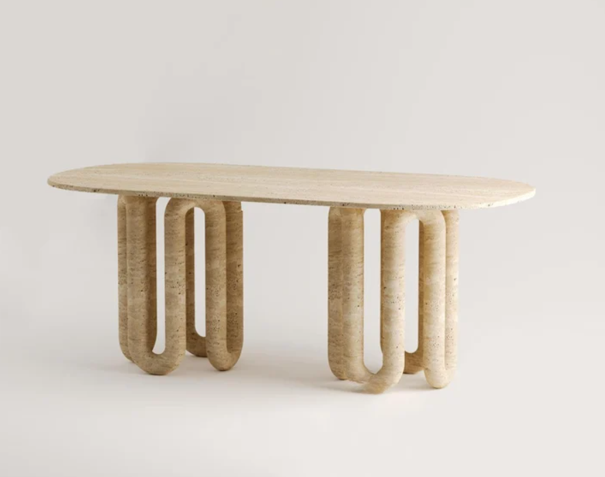 Le contraste entre la robustesse de la pierre naturelle et la finesse des pieds en forme de U confère à cette table une allure audacieuse et contemporaine. Son design épuré et ses lignes architecturales lui permettent de s’intégrer harmonieusement dans tout type d’intérieur, ajoutant une note sophistiquée à votre décoration.