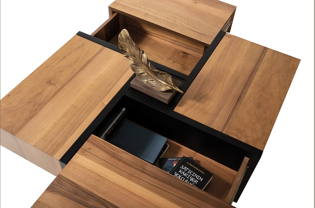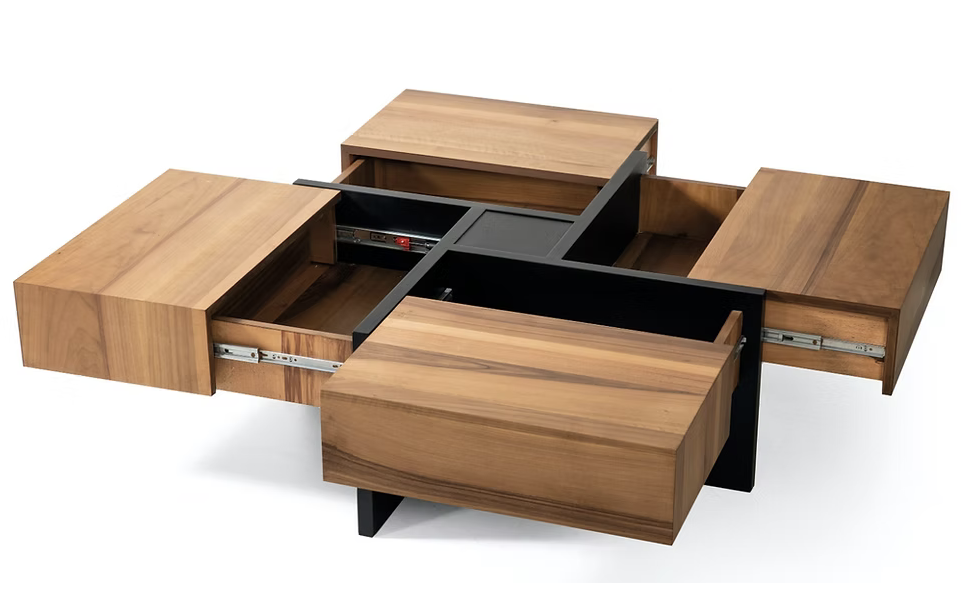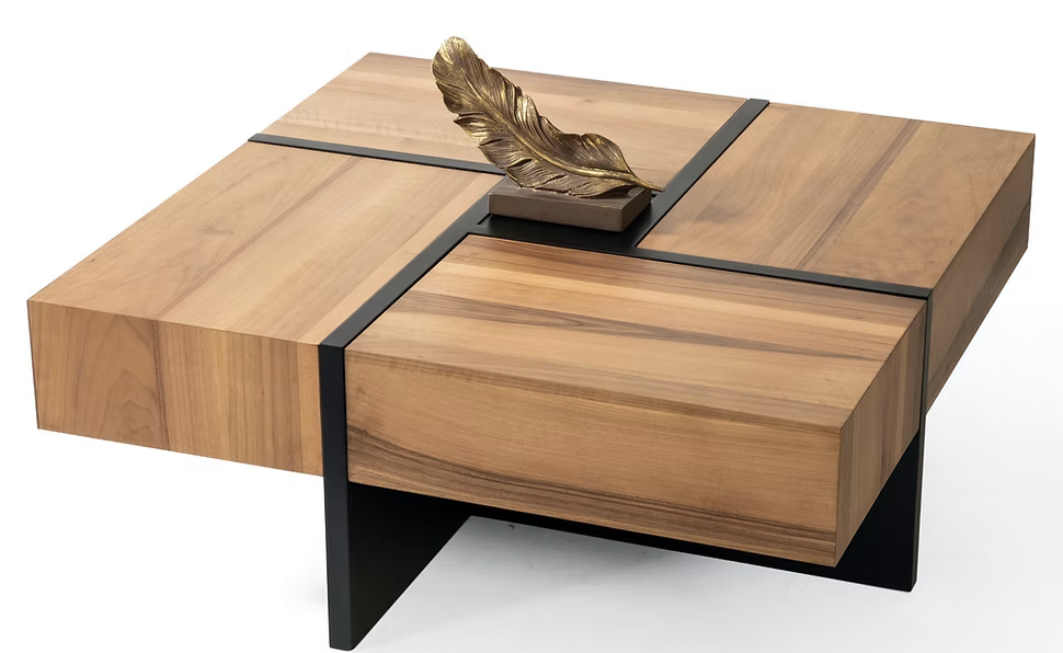 La table basse Puma se distingue par son jeu d’assemblage cubique. Fabriquée en bois massif avec inserts noirs en métal, elle apporte un esprit graphique et robuste à votre salon. Son volume généreux la rend aussi pratique qu’esthétique.