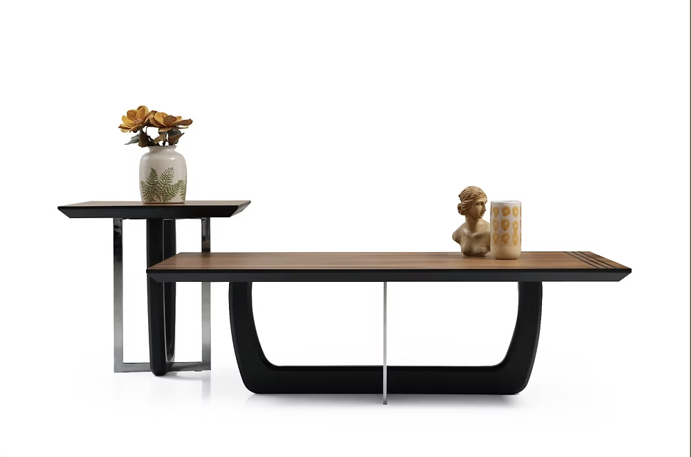 La table Taycan séduit par l’alliance du bois naturel et d’un piétement métallique épuré. Sa forme rectangulaire aux angles arrondis et ses lignes aériennes en font un meuble harmonieux, parfait pour un salon contemporain ou minimaliste.