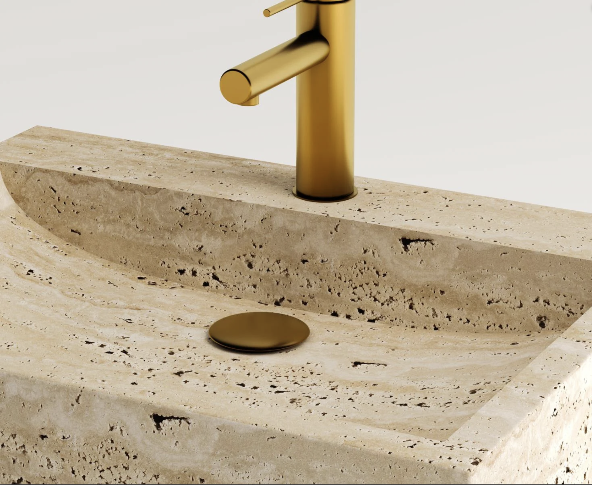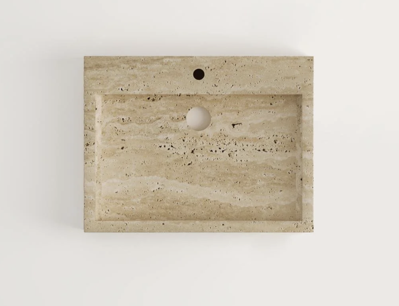 La vasque Terra est réalisée en travertin naturel et se caractérise par une cuve délicatement creusée dans une forme rectangulaire très épurée. L’intérieur arrondi du bassin contraste avec ses lignes extérieures droites pour un résultat contemporain et élégant. Ses tons pierre clairs et ses marbrures discrètes apportent une ambiance chaleureuse à la salle de bain.