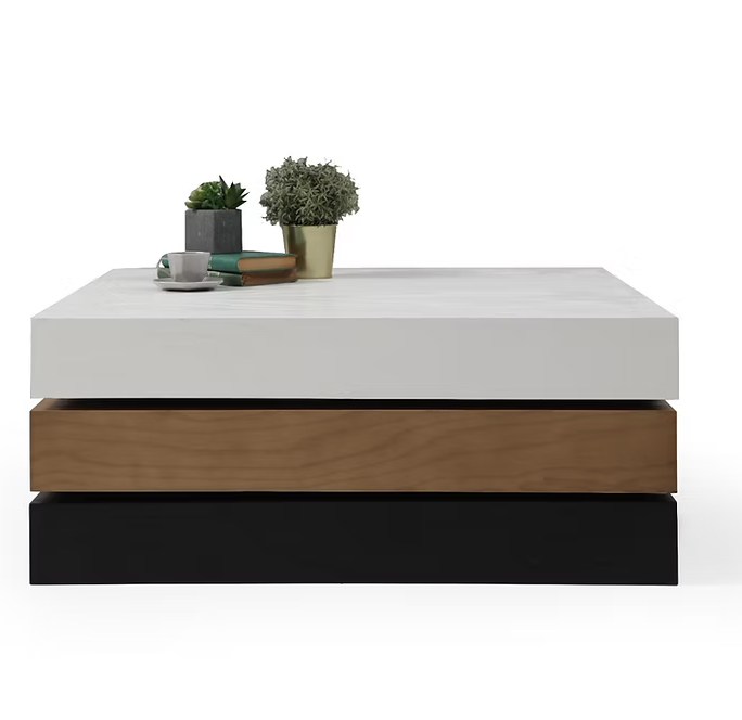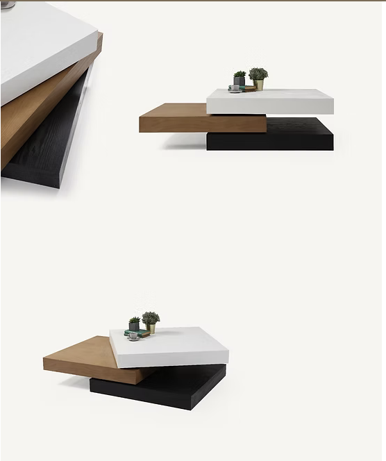 Avec ses trois plateaux superposés aux teintes contrastées, la table basse Triple Square attire immédiatement l’attention. Sa structure géométrique apporte un équilibre parfait entre volume et légèreté. Idéale dans un salon contemporain, elle devient rapidement un élément central de décoration.
