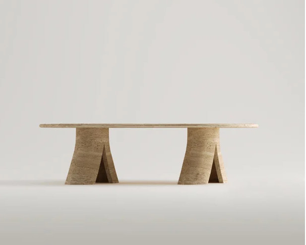 Fabriquée en Turquie avec un savoir-faire d’exception, la table Tsilencio repose sur un plateau ovale délicatement posé sur deux pieds cylindriques texturés. Ce contraste de formes et de textures confère à la table une élégance subtile et une forte personnalité.